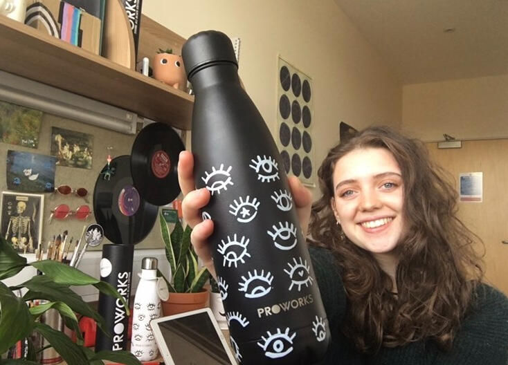 I was given an amazing opportunity to turn my bottle design into a reality with ProWorks. After drawing mock-ups, I then was given a template and guidelines which I took into photoshop and refined the design - making sure the quality was high for print and the pattern aligned. I chose a simple yet eye-catching design for a bottle that would be something I would want to use (and did)!