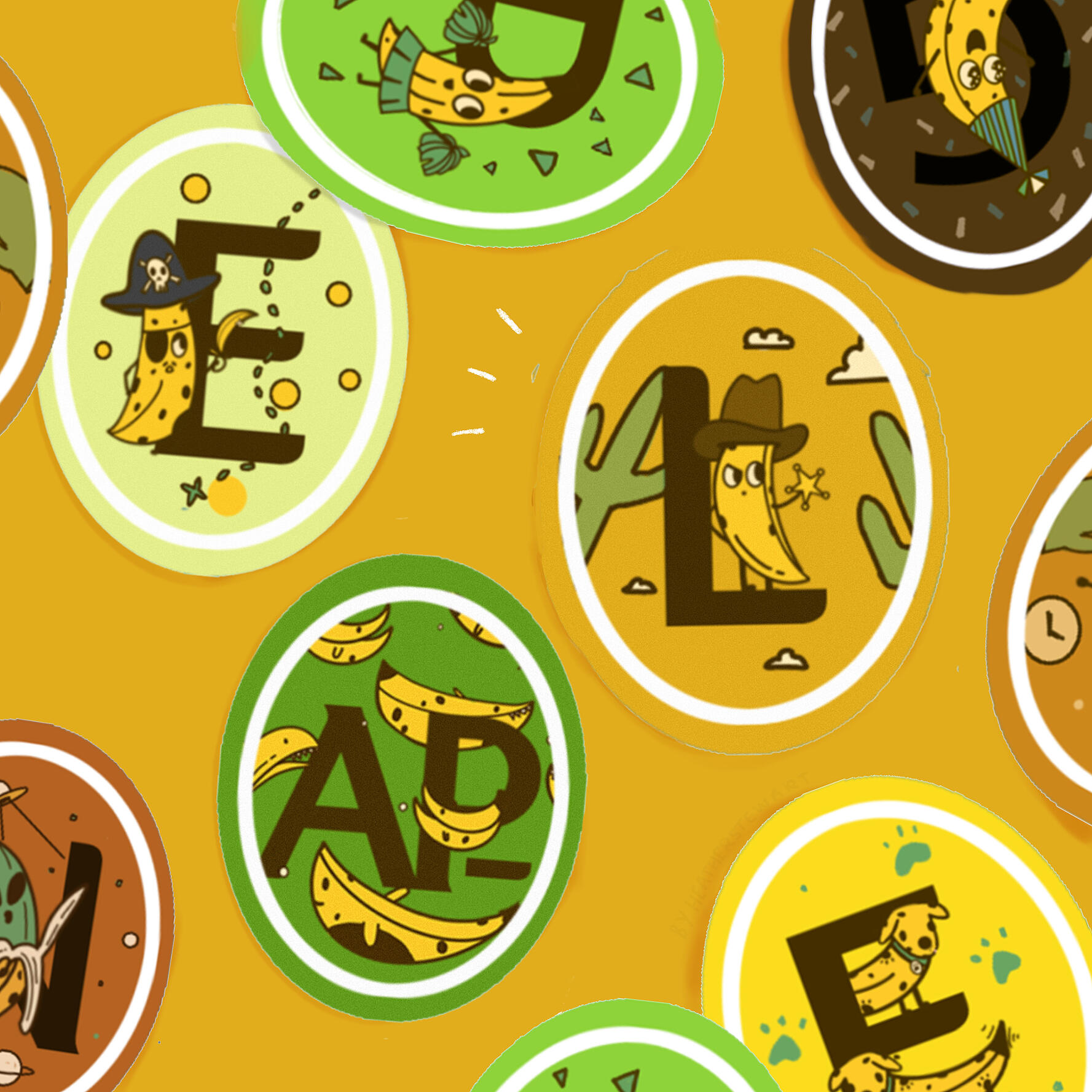 This was a brief from GSA, to create a new rewards system. I got the idea to create the award for patience when waiting for bananas to ripen, as my friend had recently made banana pancakes and I wanted to make some myself but had no overripe bananas to do so. My only choice was to wait for them to become sweetest and overripe.The colours of each stage I am thinking of corresponding to a badge or sticker to colour match it so you know when you gained the award.The reward system is recognising the patience and willpower people have when waiting for a banana to become overripe so it is at its sweetest to bake with and use in a recipe.My final outcome was banana characters and animals that are standing next to letters and they spell out ‘ap-peeling’. The small size of the fruit sticker was something I had to take into account as too much on the sticker would be too hard to read and cluttered. Colour was decided to be the colour the banana would change at the different stages of ripeness and when you can colour match that to the banana (hence why the white border is slightly inside surrounded by the colour). When it matches you can take it off and stick it wherever they want and eventually it will spell out the intended word.To further progress this project I would have liked the create many different words they would spell out and it would be more exciting and enticing to get as it is not the same word again and again.